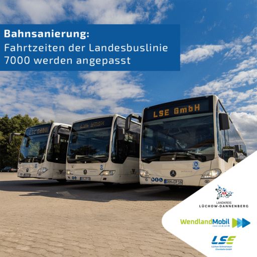 Der kreiseigene Verkehrsbetrieb Lüchow-Schmarsauer Eisenbahn (LSE) wird Anfang kommender Woche bestreikt. Dadurch fallen im Landkreis Lüchow-Dannenberg am Montag und Dienstag (20. und 21. April 2026) zahlreiche Fahrten im ÖPNV und in der Schülerbeförderung aus. Fahrten, für die die LSE-Subunternehmen beauftragt hat, finden statt. Welche Busse aufgrund des landesweiten Warnstreiks ausfallen, ist unter Störungen + Sperrungen veröffentlicht.…