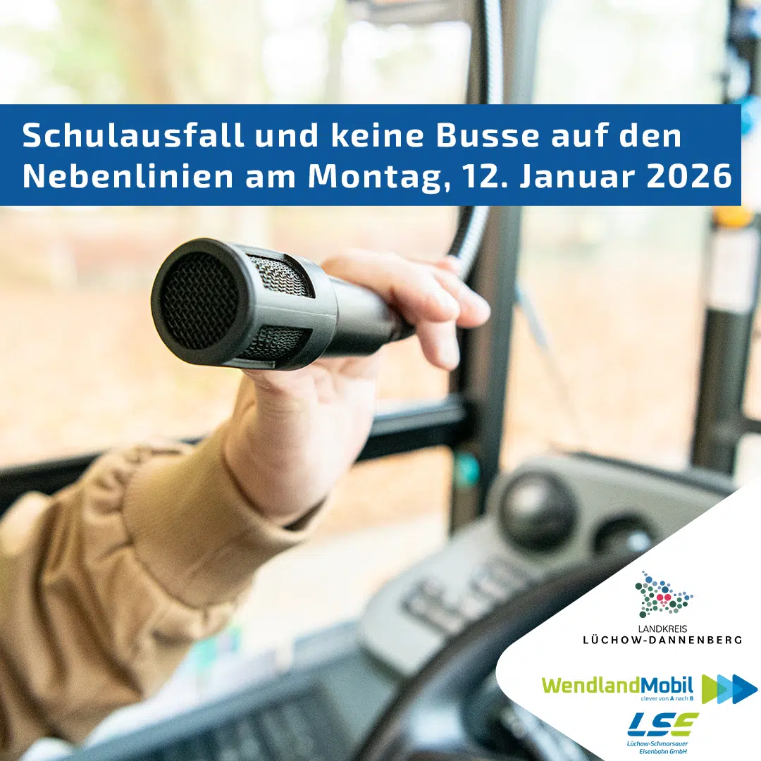 Der kreiseigene Verkehrsbetrieb Lüchow-Schmarsauer Eisenbahn (LSE) wird Anfang kommender Woche bestreikt. Dadurch fallen im Landkreis Lüchow-Dannenberg am Montag und Dienstag (20. und 21. April 2026) zahlreiche Fahrten im ÖPNV und in der Schülerbeförderung aus. Fahrten, für die die LSE-Subunternehmen beauftragt hat, finden statt. Welche Busse aufgrund des landesweiten Warnstreiks ausfallen, ist unter Störungen + Sperrungen veröffentlicht.…
