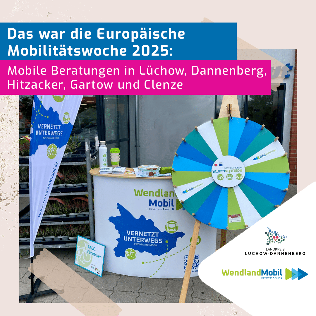 Im Rahmen der Europäischen Mobilitätswoche 2025 hat das Team des Kommunalen Mobilitätsmanagements Mitte September zahlreiche Aktionen unter dem Motto „Mobilität für alle“ und „Sicherheit für Schülerinnen und Schüler“ organisiert. 120 Bürgerinnen und Bürger nutzten die Gelegenheit, sich in Lüchow, Dannenberg, Hitzacker, Gartow und Clenze über die aktuellen Mobilitätsangebote im Wendland zu informieren. „Wir wollen sichere…